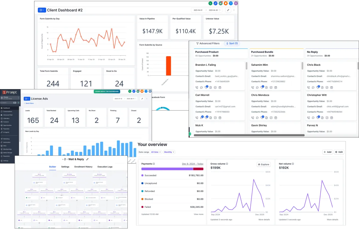 We'll give you different options for different use cases. The "brain" or the "engine" is usually built on Voiceflow. The connections and management are done through 1Prompt - you can use your own HighLevel account. Or you can use other tools that I'll mention on the workshop.